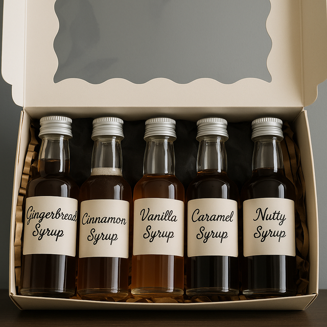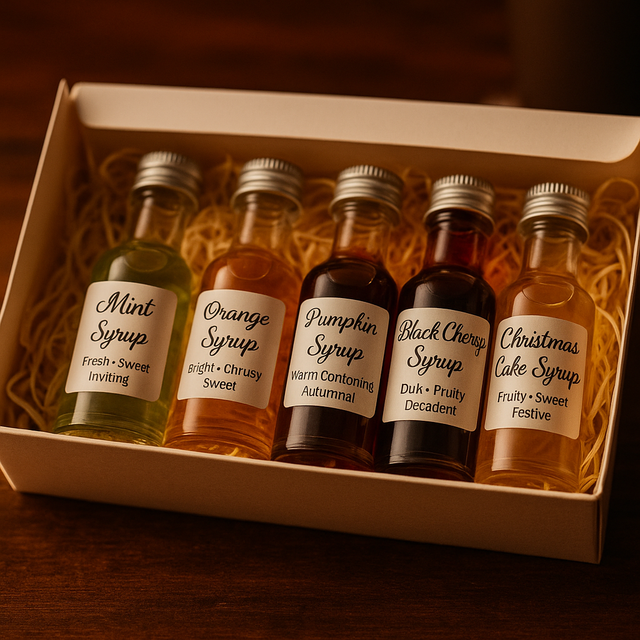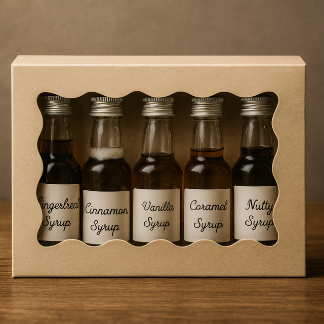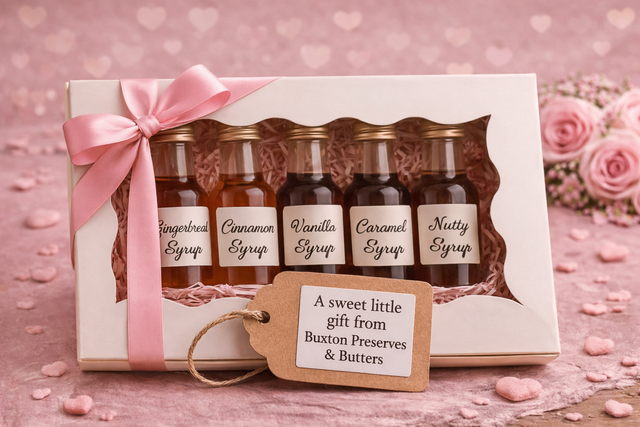 A beautifully presented collection of five handcrafted syrups made in small batches by Buxton Preserves & Butters in Derbyshire. Each set includes Vanilla, Gingerbread, Nutty, Caramel, and Cinnamon — five classic flavours perfect for coffee, desserts, or cocktails. Made using all-natural ingredients, these artisan syrups bring barista-style indulgence to every cup. A thoughtful gift for coffee lovers and home baristas alike.