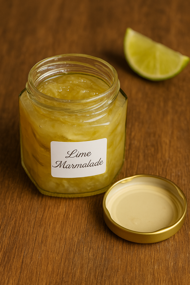 Zesty, sharp, and packed with citrus punch — our handmade Lime Marmalade is a bold twist on a breakfast classic. Made with thinly sliced fresh limes, slow-cooked with sugar and water, it strikes the perfect balance between tartness and sweetness.