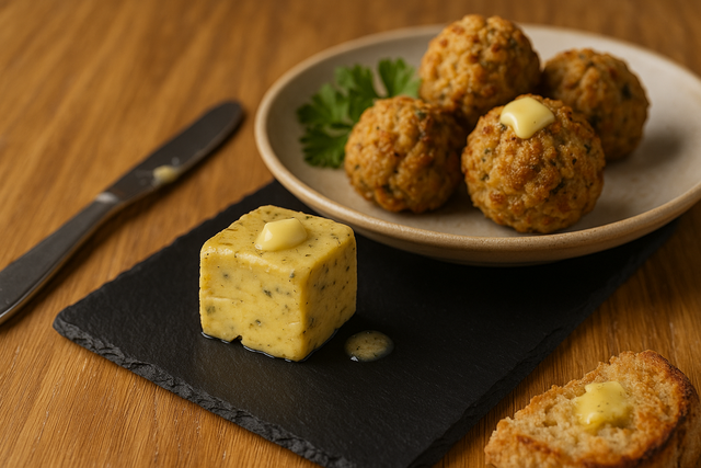 A savoury classic with a gourmet twist. Our handcrafted Sage & Onion Butter blends creamy, high-quality butter with aromatic sage and gently sautéed onions to create a rich, flavour-packed accompaniment.